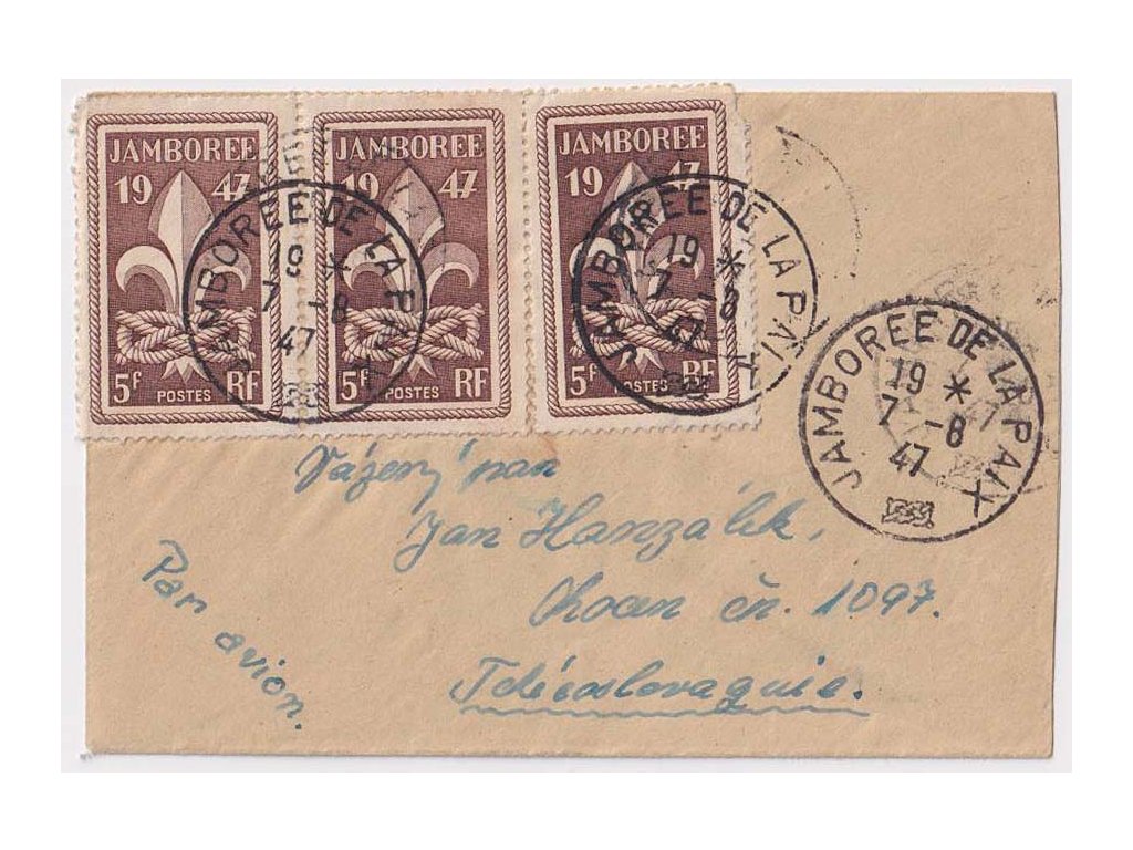 1947, DR Jamboree de la paix, dopis zasl. do ČSR, malý formát, stopy provozu