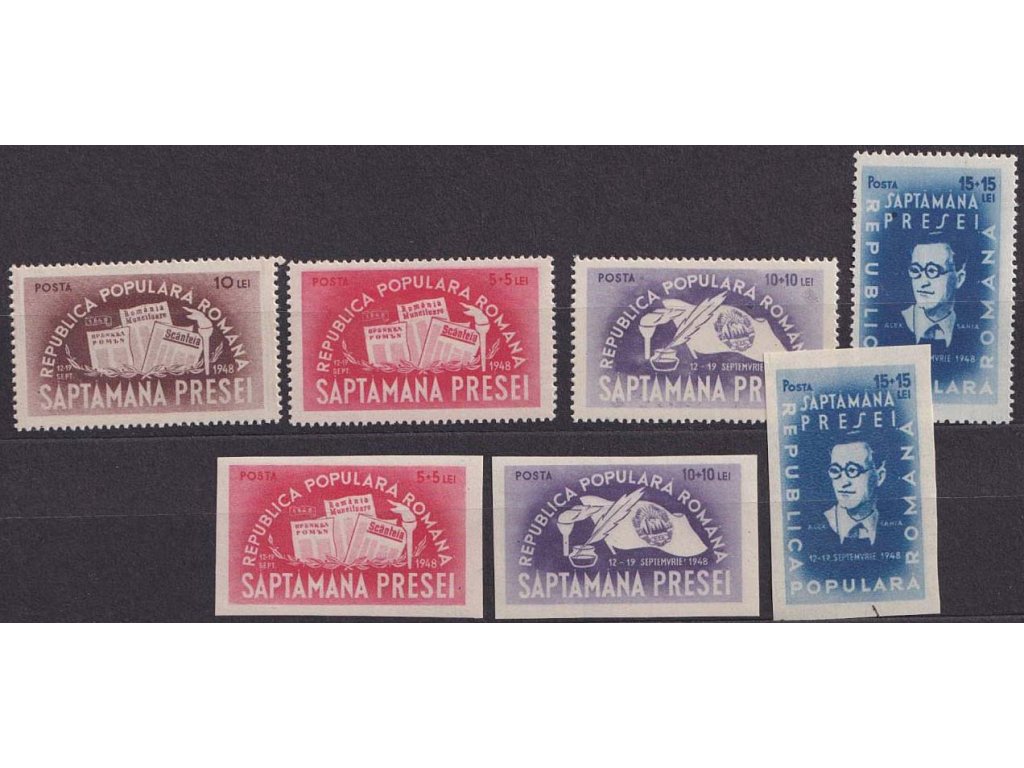 Poštovní známka, 1948, 10-15 L série Noviny, MiNr.1154-57A,B, ** , 7 kusů