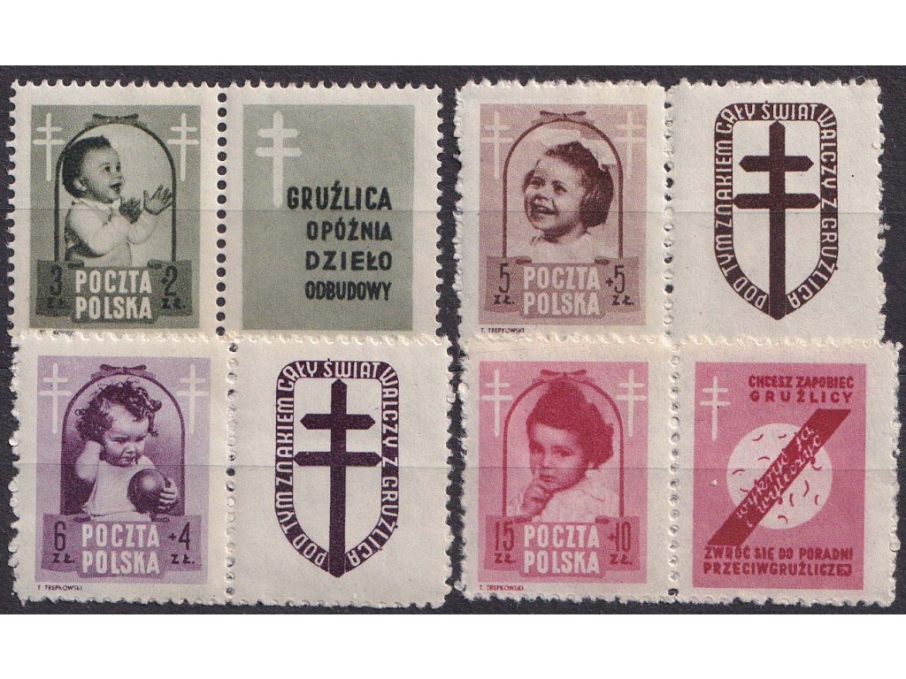 1948, 3-15 Zl série Tuberkulóza s kupony, MiNr.511-14, **