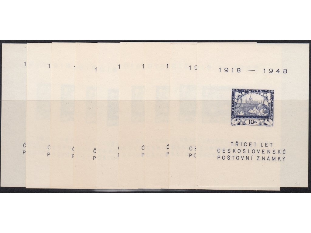 1948, aršík 30 let čs. zn., kompletní řada 9 podtypů, Nr.A497, **