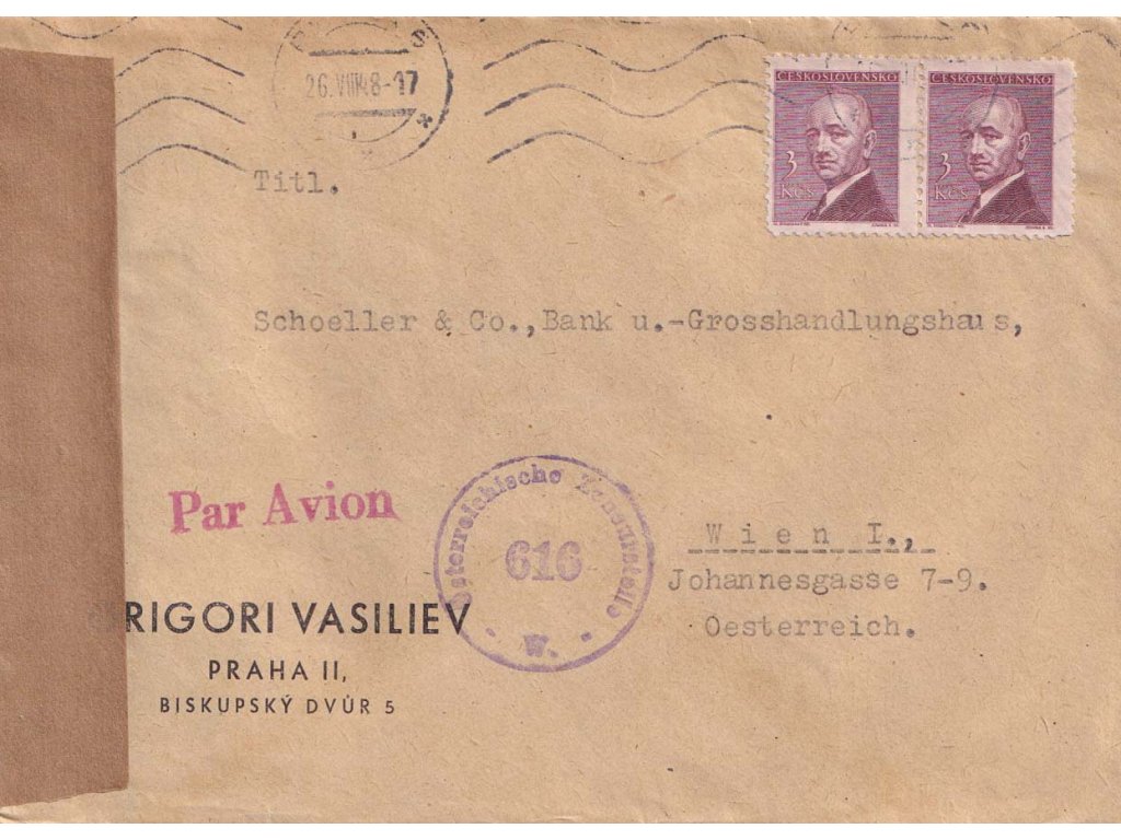1948, DR Praha, dopis zasl. do Vídně, cenzura, všechny náležitosti