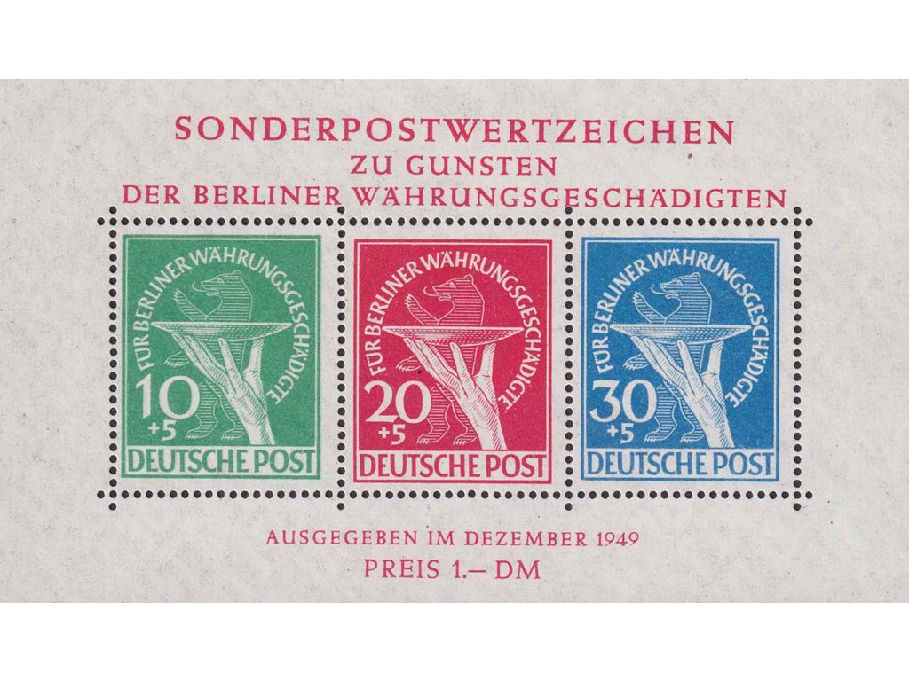 Poštovní známka, 1949, 10-30 Pf aršík, MiNr.Bl.1, **