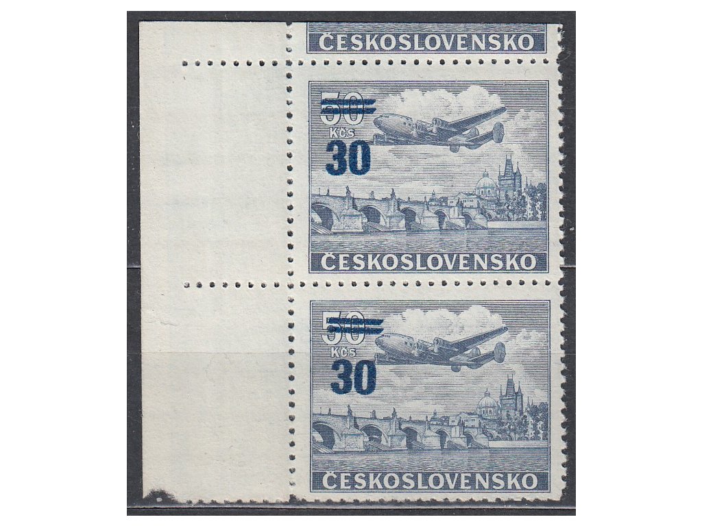 Poštovní známka 1949, 30/50Kčs Letecké, rohová 2páska s ST I+II.typ, Nr.L32, **