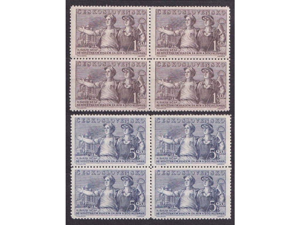 Poštovní známka, 1950, 1.50-5 Kčs 2. sjezd SČSP, 4bloky, Nr.569-70, **
