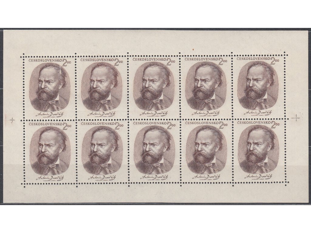 1951, 2Kčs Dvořák, 10blok, Nr.PL595, **, vzácný 10blok, lehký archový obtisk (viz.foto)