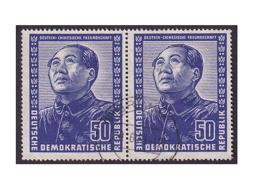 Poštovní známka, 1951, 50 Pf Mao Zedong, MiNr.288, razítkované, 2páska
