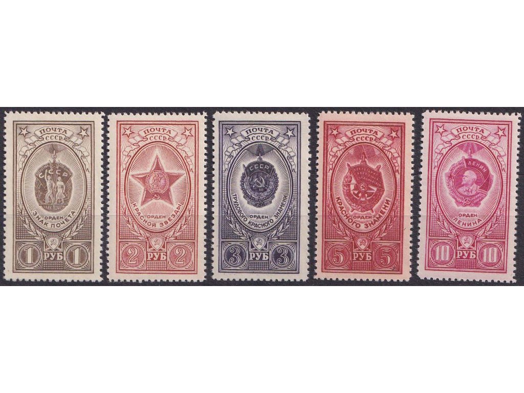 Poštovní známka, 1952, 1-10 R série Řády, MiNr.1653-57, **