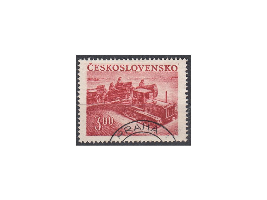 Poštovní známka 1952, 3Kčs Traktor, DV - reflektor, Nr.650DV40, razítkované