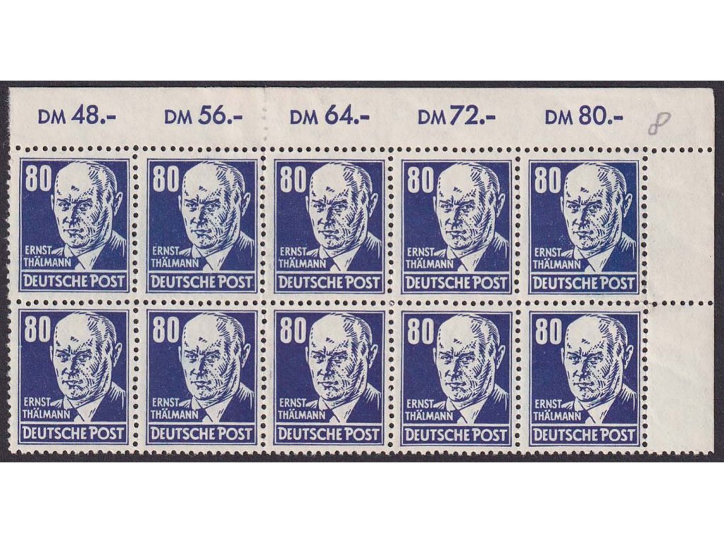Poštovní známka, 1952, 80 Pf Thälmann, 10blok, MiNr.339, **/* , těžší * , většina zn. ** , vše viz. foto