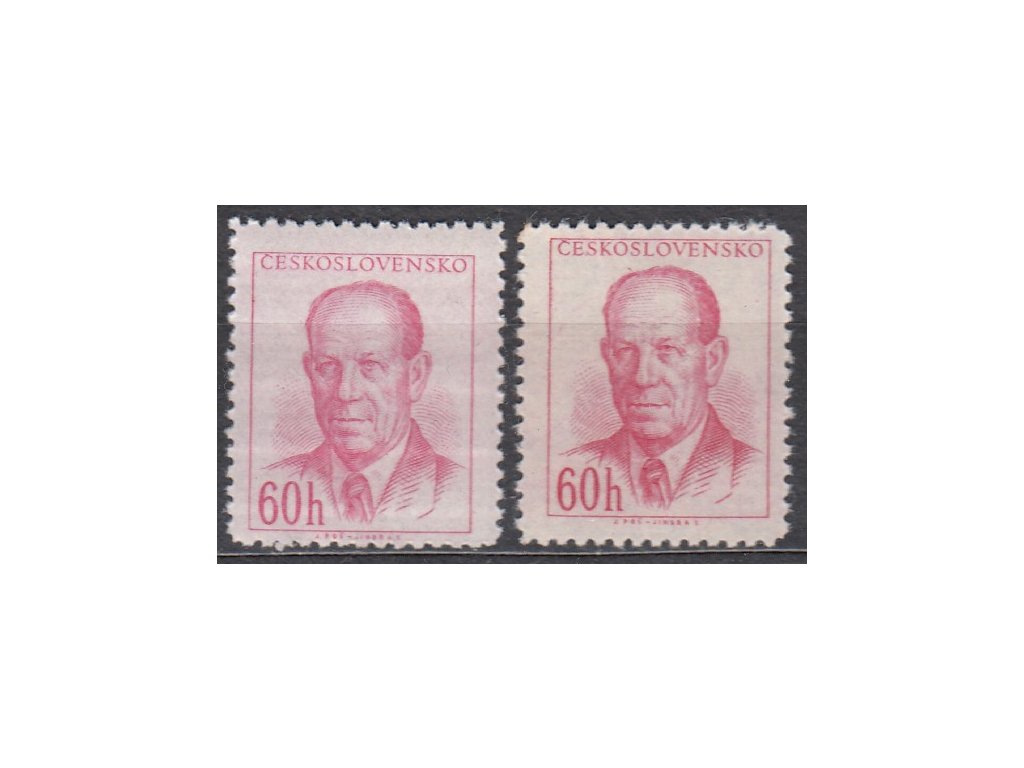 Poštovní známka 1953, 60h Zápotocký, Řz.12 1/2, 2 ks - světle karmínová a rudokarmínová, Nr.741a,b, **