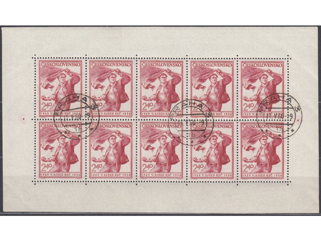 Poštovní známka 1954, 2.40Kčs KSČ, 10blok, Nr.PL771, denní razítko, lep **