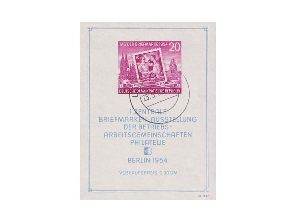 Poštovní známka, 1954, 20 Pf Výstavní aršík, MiNr.Bl.10, razítkované