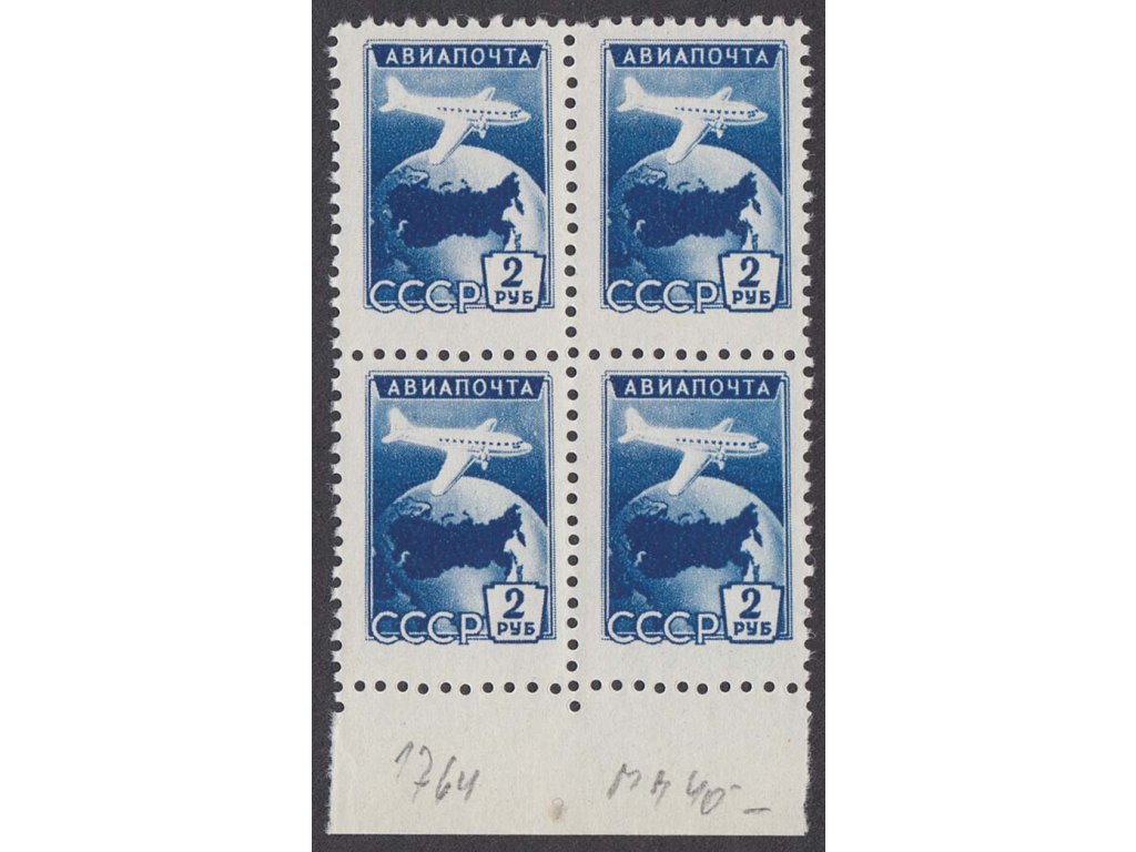 Poštovní známka, 1955, 2 R letecká, 4blok, MiNr.1762A, **