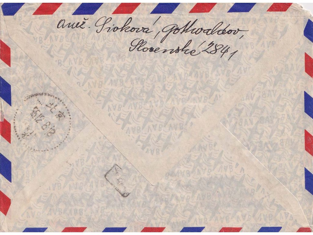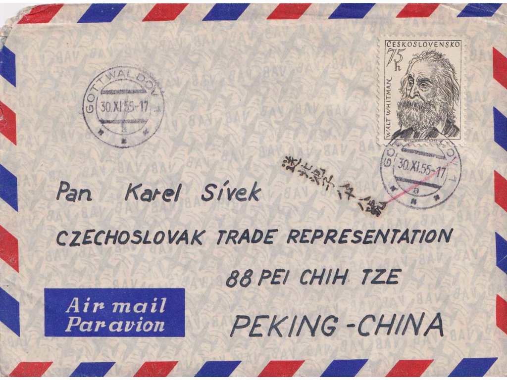 1955, DR Gottwaldov, let. dopis zaslaný do Číny, všechny náležitosti, prošlé
