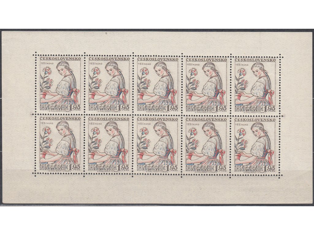 Poštovní známka 1957, 1.95Kčs Lidové kroje, desetiblok, Nr.PL971, **