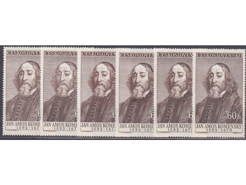 Poštovní známka 1957, 60h Komenský, kompletní řada typů I-VI, Nr.930, **, mimořádná nabídka
