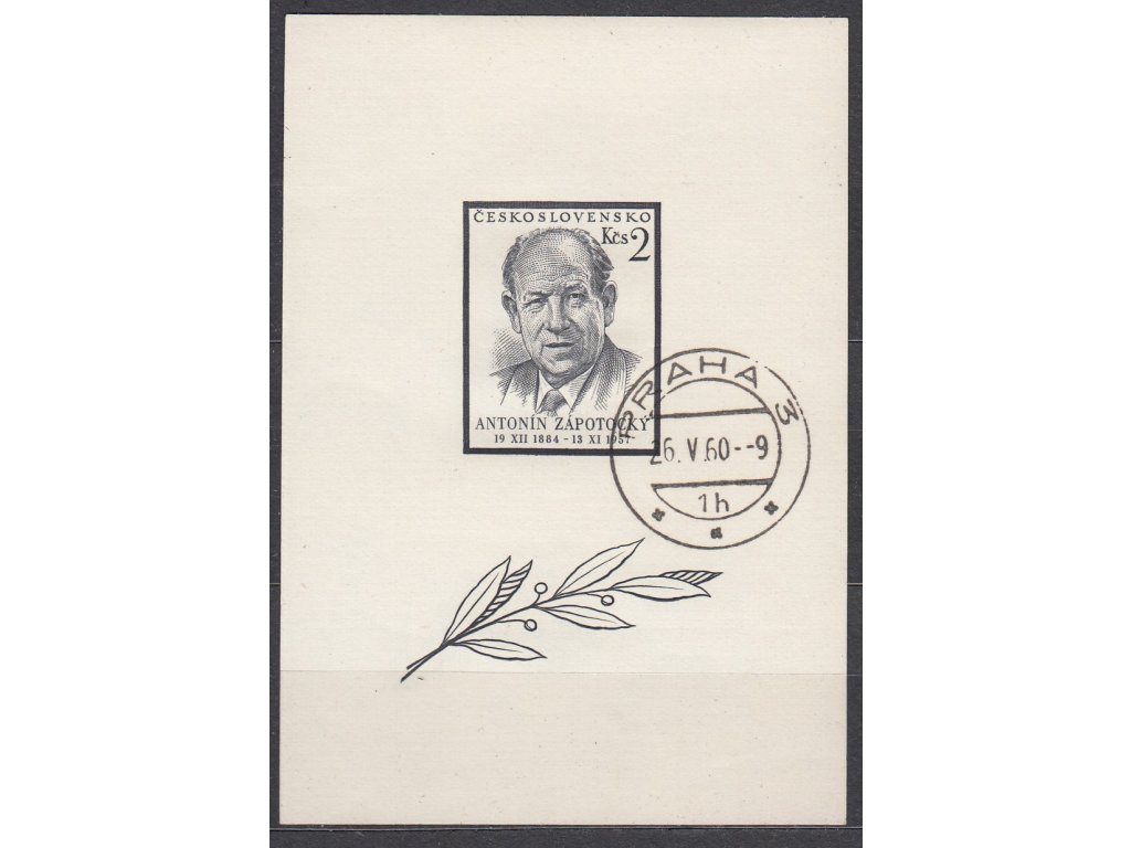 1957, aršík 2Kčs Zápotocký, II.typ, zk.Beneš, Nr.A967I, denní razítko, lep **