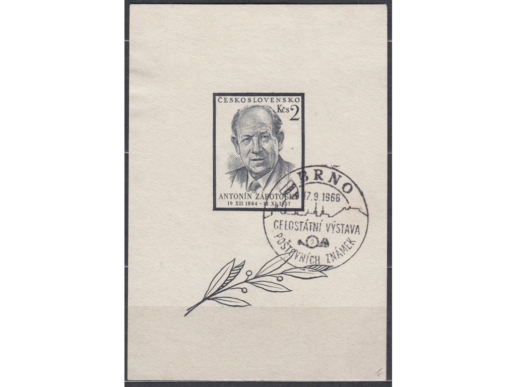 1957, aršík 2Kčs Zápotocký, II.typ, zk.Karásek, pamětní razítko BRNO, Nr.A967I, razítkované
