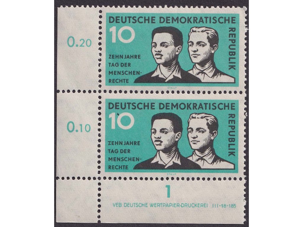 Poštovní známka, 1958, 10 Pf Menšiny, roh. kus s DZ, MiNr.669, **