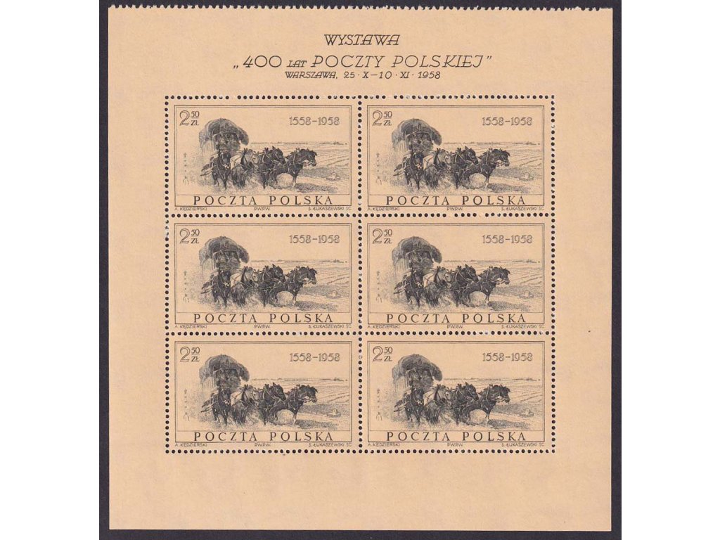 Poštovní známka, 1958, 2.50 Zl aršík 400. let Polské pošty, MiNr.Bl.1072II, **