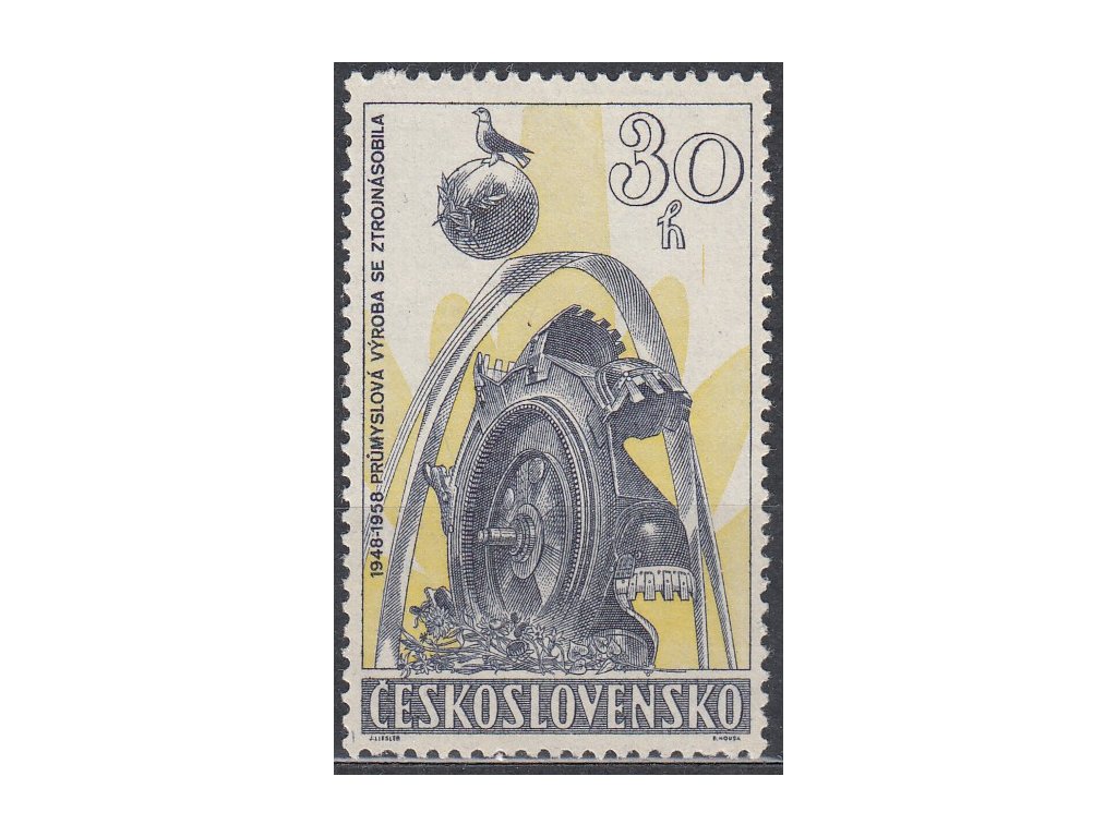 Poštovní známka 1958, 30h Rypadlo, DV na ZP20/2 - žlutá svislá čára pod "h", Nr.982, **