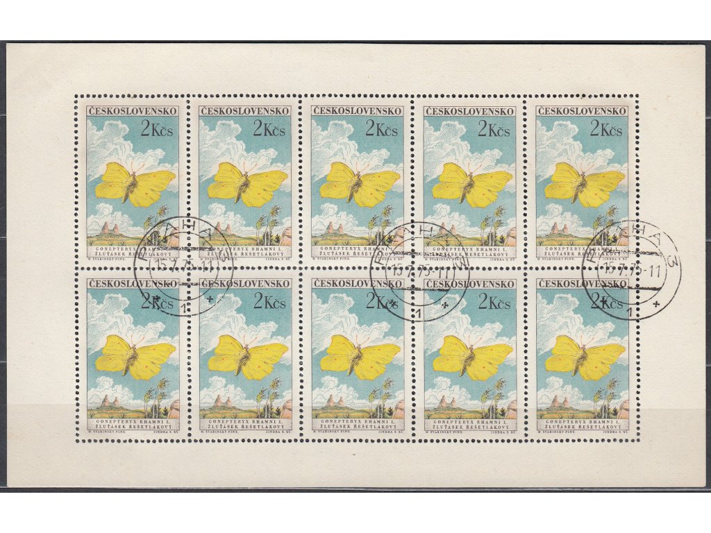Poštovní známka 1961, 2Kčs Motýli, 10blok, Nr.PL1225, razítkované, lep **