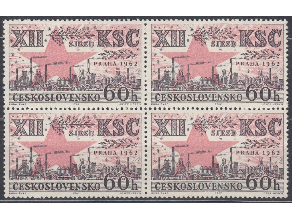 Poštovní známka 1962, 60h KSČ, 4blok s DV - čárka mezi JOSEF a HERČÍK, Nr.1278, **