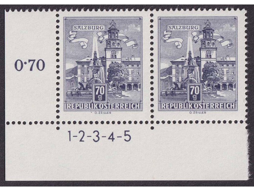Poštovní známka, 1962, 70 g Salzburg s DZ 1-2-3-4-5, MiNr.1114, **