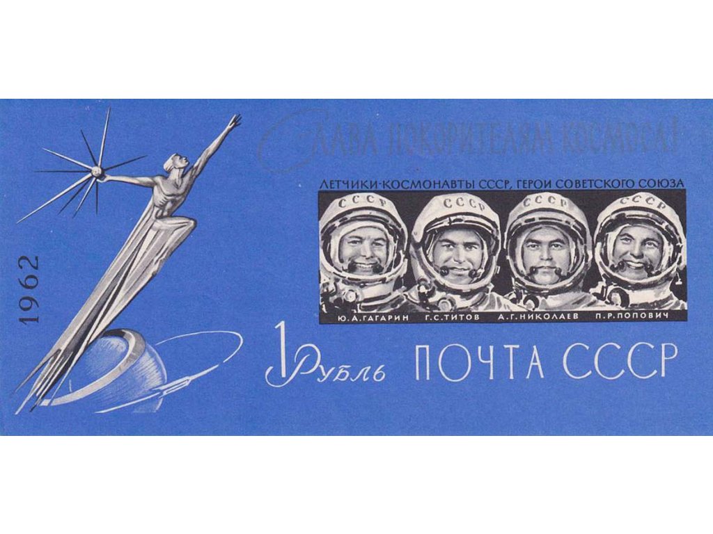 Poštovní známka, 1962, 1 R nezoubkovaný aršík Sovětští kosmonauti, MiNr.Bl.31A, **