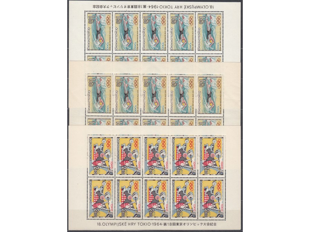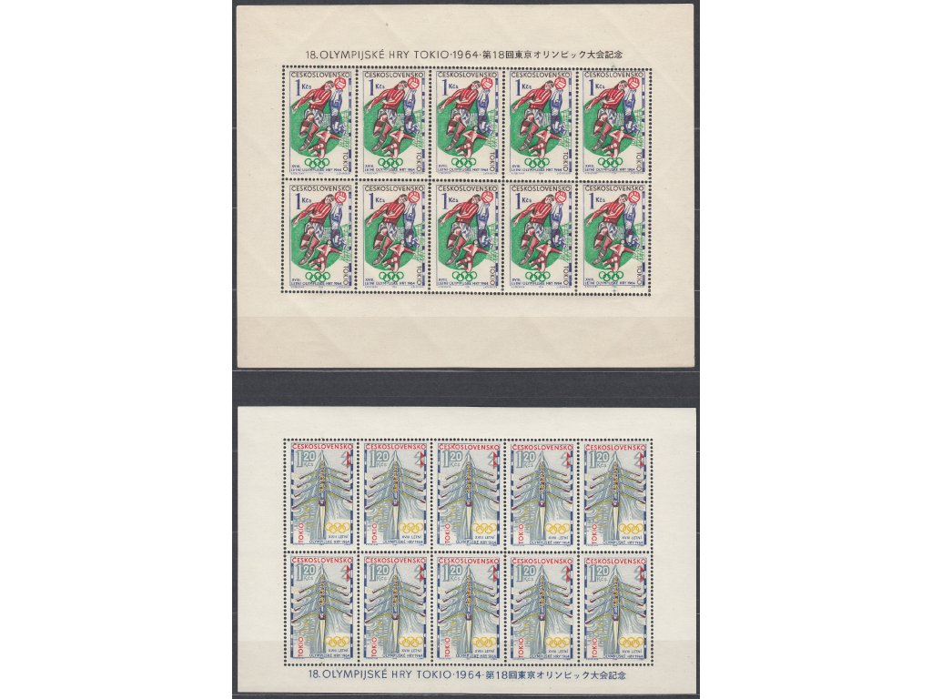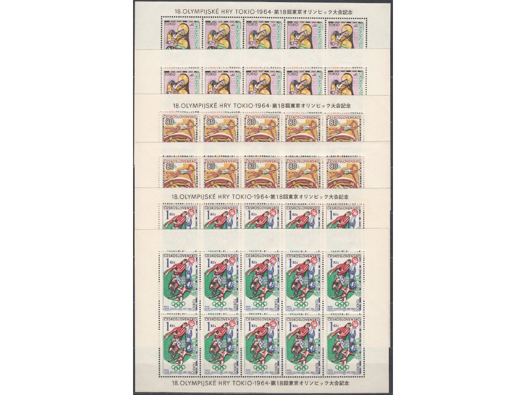 Poštovní známky 1964, 60h-2.80Kčs Tokio, kompletní 10bloky včetně 1Kčs široký okraj, celkem 11 ks PL, Nr.PL1394-9, **, mimořádná jakost a nabídka