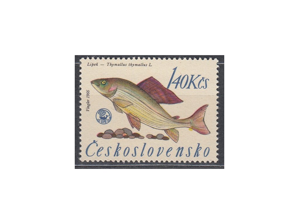 1966, 1.40Kčs Ryby, DV - žlutá skvrna pod ocasem, Nr.1521DV67/1, **