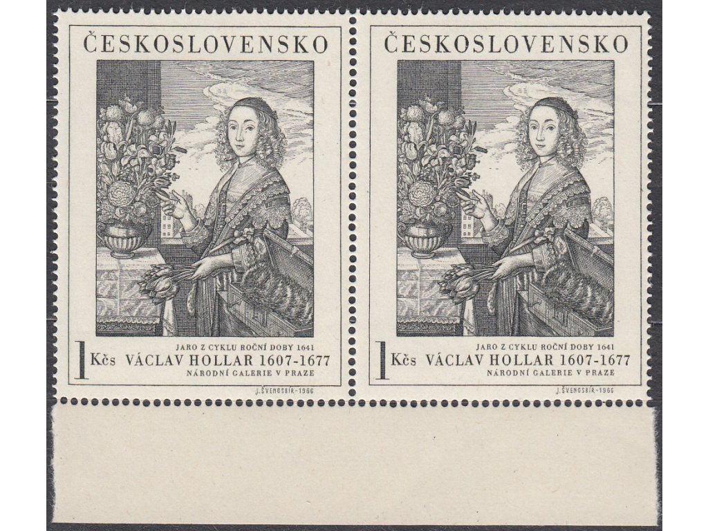 Poštovní známka 1966, 1Kčs Umění, krajová 2páska s DV - "slza", Nr.PL1574, * po nálepce