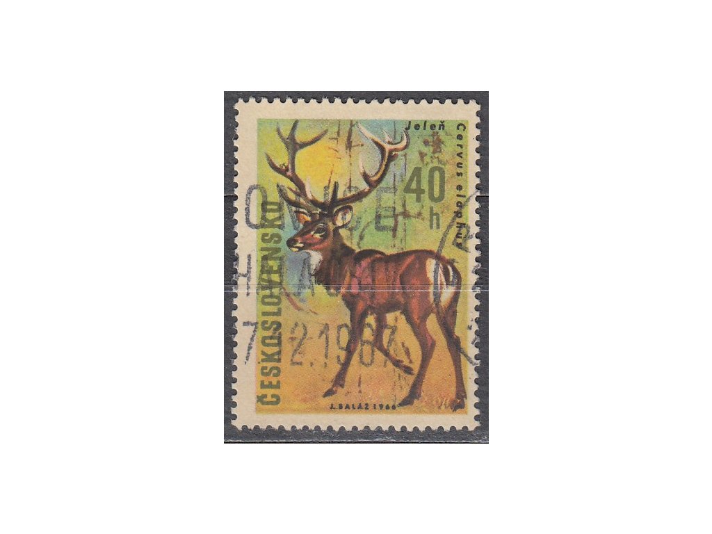 Poštovní známka 1966, 40h Jelen, DV - skvrna v paroží, Nr.1568DV45/4, razítkované, mimořádně vzácná desková vada