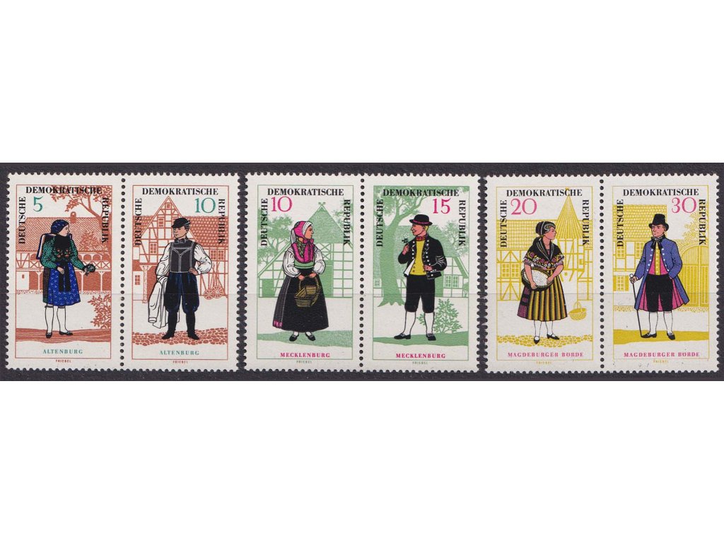 Poštovní známka, 1966, 5-20 Pf série Kroje II., MiNr.1214-19, **