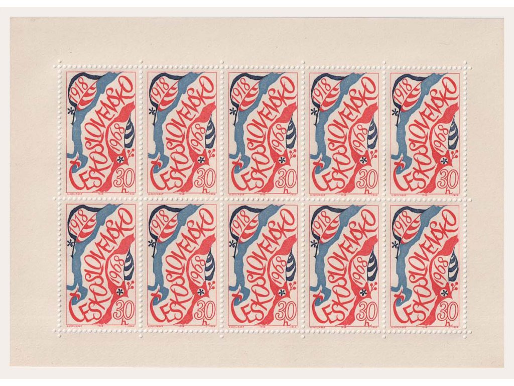 Poštovní známky, 1968, 30 h Propagace Československa, desetiblok, **