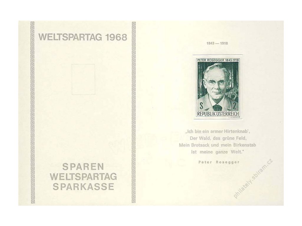 1968, MiNr.1267 Rosegger, pamětní otisk, 2list, bílý papír