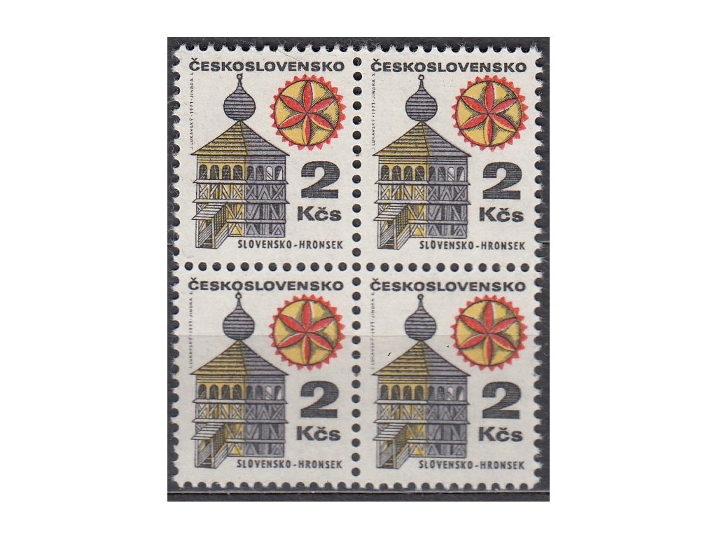 Poštovní známka 1971, 2Kčs Architektura, papír oz, 4blok, Nr.1877xb, **