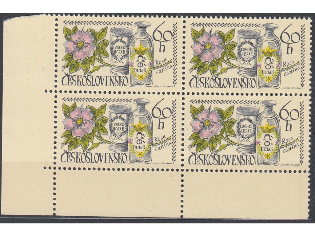 Poštovní známka 1971, 60h Farmacie, rohový 4blok se zbytky moletáže na ZP41 a 47, Nr.1915DO, **