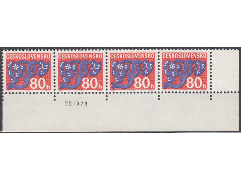Poštovní známka 1971, 80h Doplatní, papír oz, rohová 4páska s datem tisku, Nr.D96xb, **