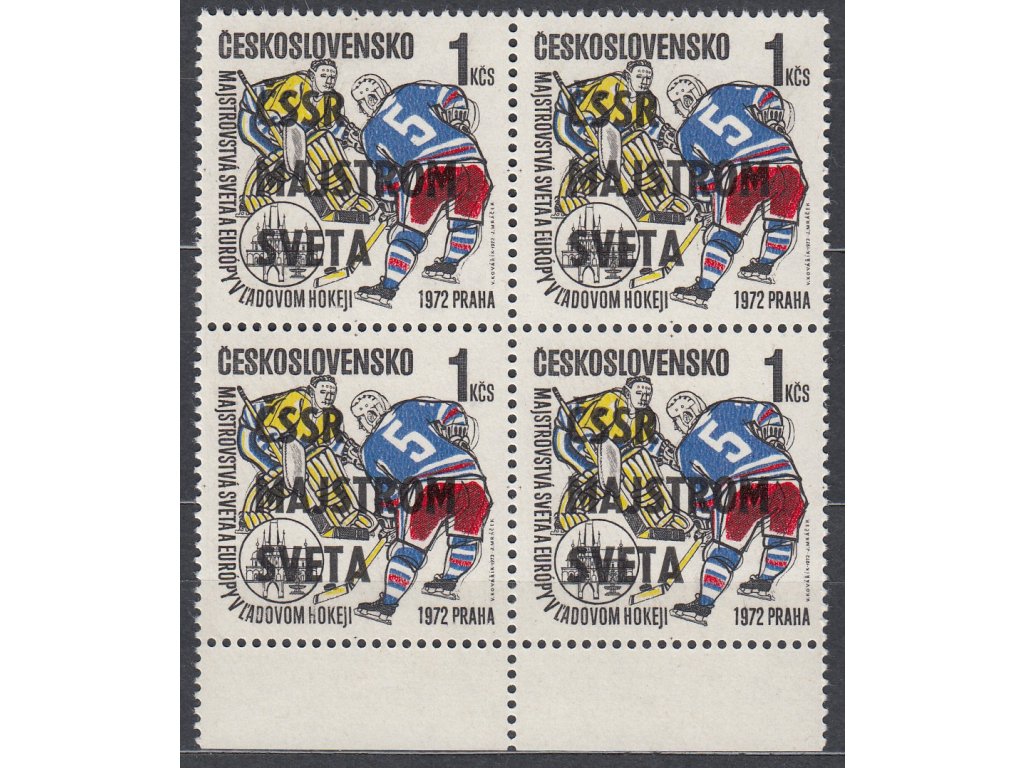 Poštovní známka 1972, 1Kčs Hokej, krajový 4blok s DV - "S" SVĚTA seříznuto, Nr.1962DV27, **