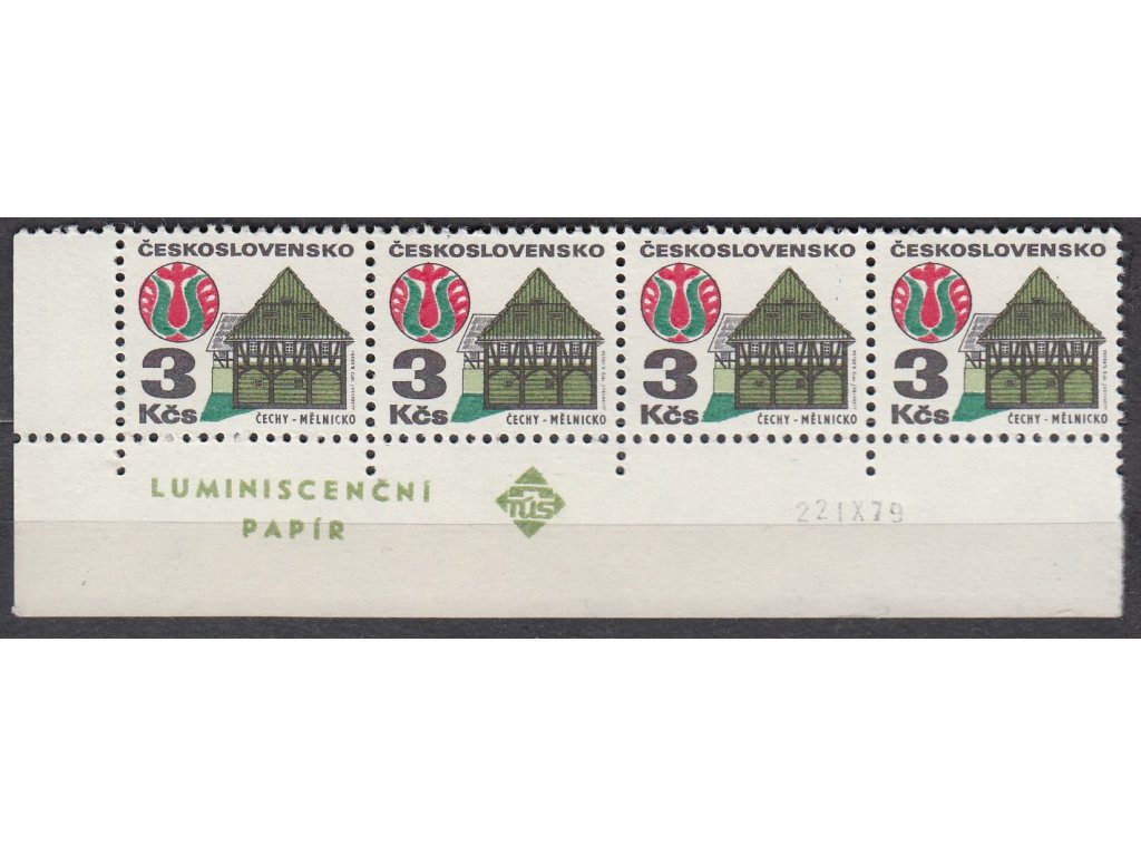 Poštovní známka 1972, 3Kčs Lidová architektura, papír fl1, rohová 4páska s datem tisku, Nr.1966ya, **