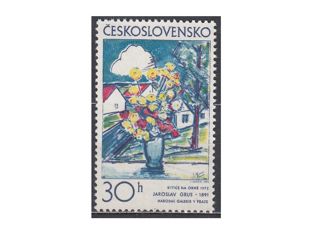 Poštovní známka 1973, 30h Grafika, DV na ZP1/2, svislá čárka přes květ, Nr.2005, **