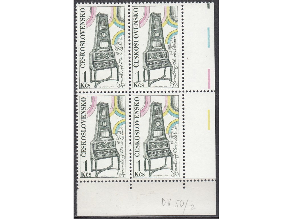 Poštovní známka 1974, 1Kčs Klavír, rohový 4blok s DV - skvrna u nohy klavíru, Nr.2088, **