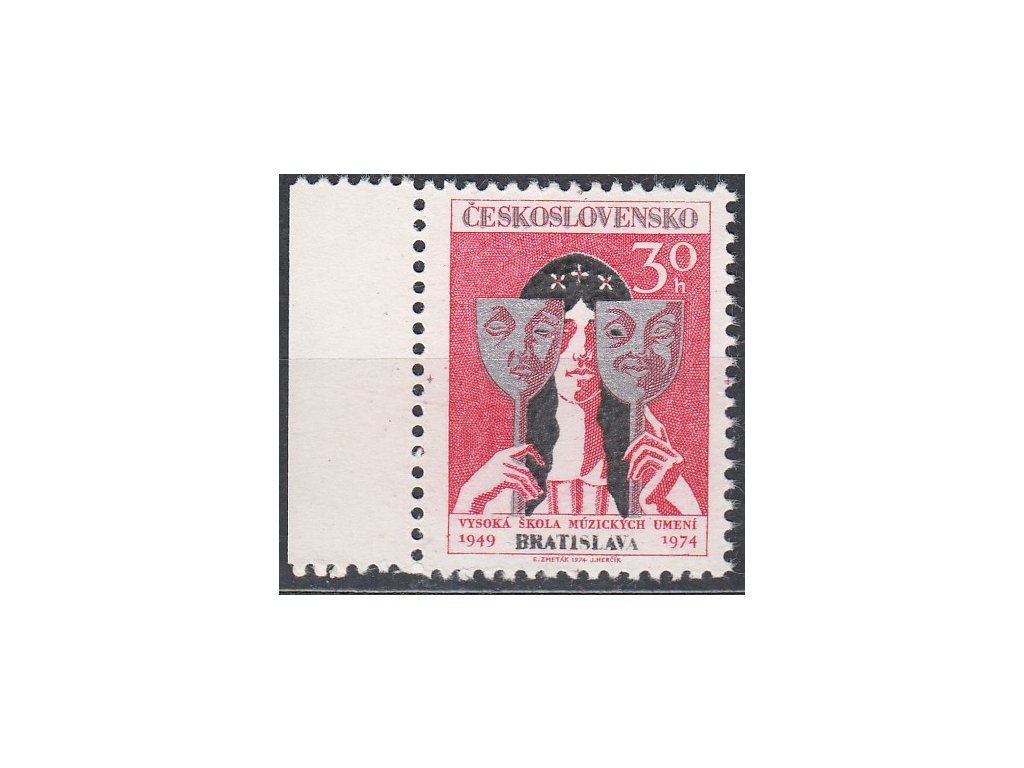 Poštovní známka 1974, 30h Můza, papír bp, krajový kus, Nr.2095xa, **