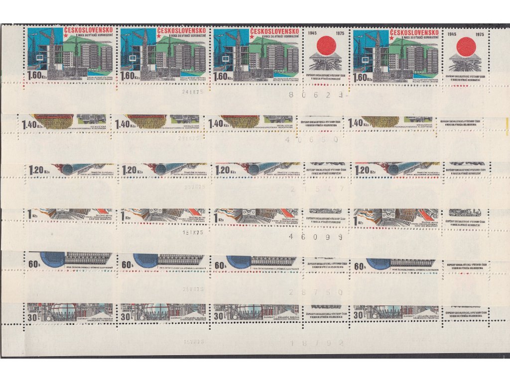 1975, 30h-1.60Kčs Výstavba, dolní pásy s kupony a daty tisku na okraji, Nr.2167-72, **