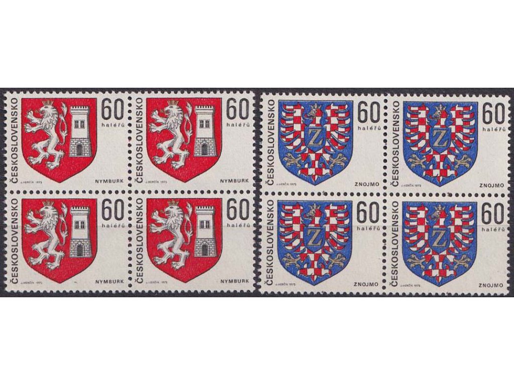 Poštovní známky, 1975, 60 h Znaky měst, 4bloky, Nr.2134-35, **