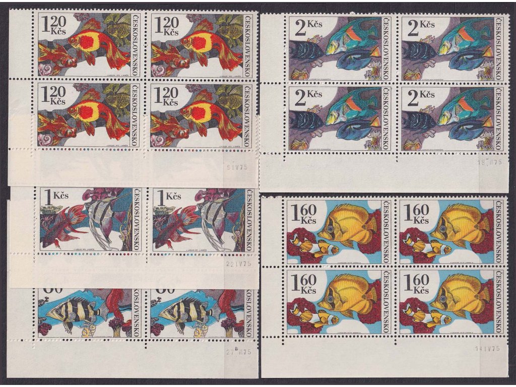 Poštovní známky, 1975, 60h-2Kčs Akvarijní ryby, 4bloky, Nr.2142-46, ** , data tisku