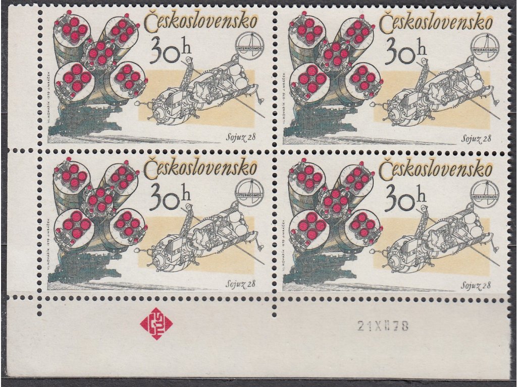 Poštovní známka 1979, 30h INTERKOSMOS, papír oz, rohový 4blok s datem tisku, Nr.2359xb, **