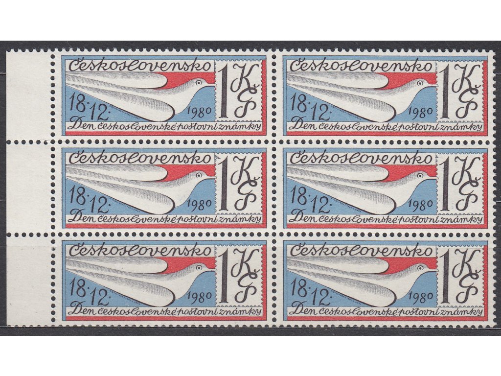 Poštovní známka 1980, 1Kčs Den čs. zn., krajový 6blok s DV - černá skvrna u "1" 1Kčs, Nr.2466, **