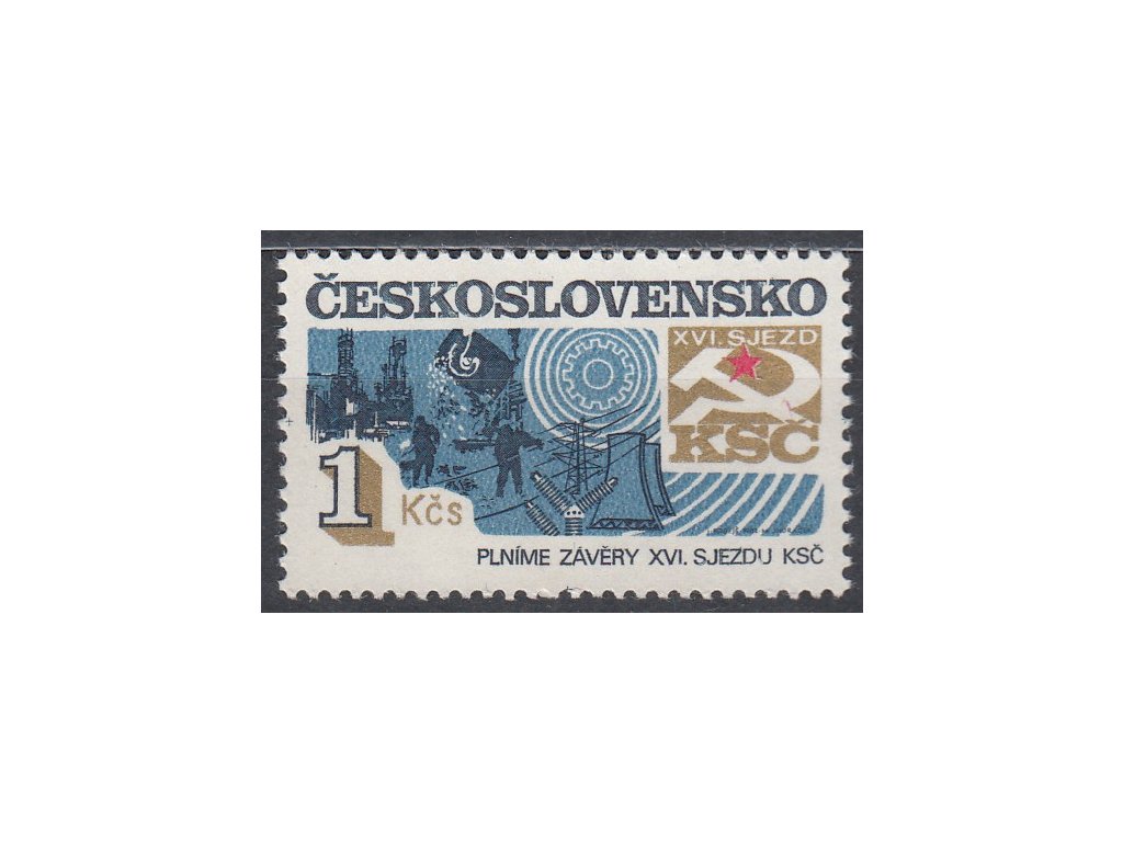 Poštovní známka 1982, 1Kčs Soc. výstavba, DV na ZP15/1 - červená šikmá čára nad "Č" KSČ, Nr.2558, **